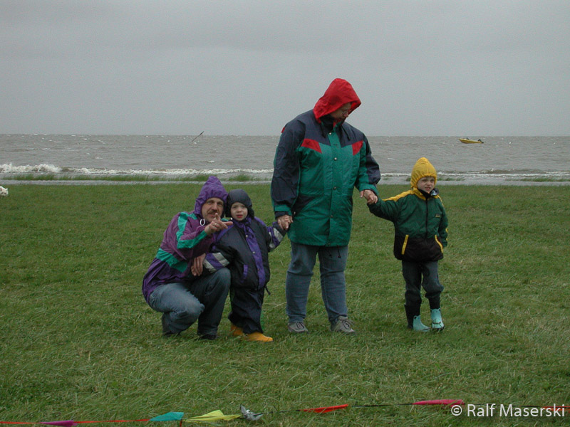 Familie Prinzler beim Sturmspaziergang.