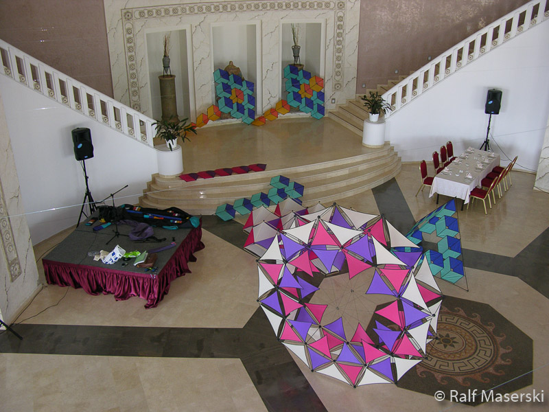 In der Eingangshalle des Restaurants durfte ich meine Drachenausstellung aufbauen.