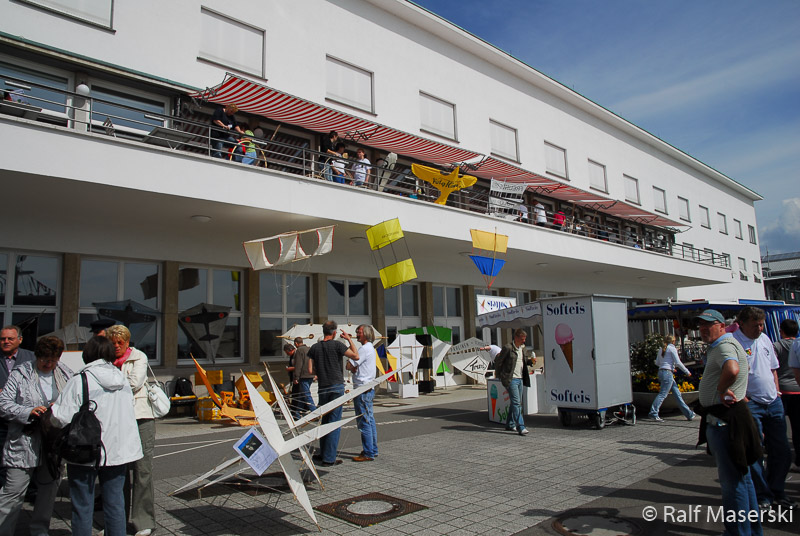 Teilnehmer, die nicht vor Ort den Kusnetzow-Drachen bauten, stellten ihre historischen Drachen vor dem Museum aus.