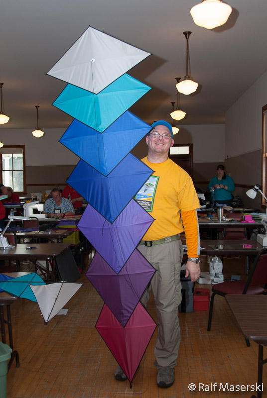 Sam King with his finished kite.