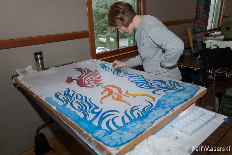 Cari King paints her Ohashi kite in Diane and Dave Butlers class.