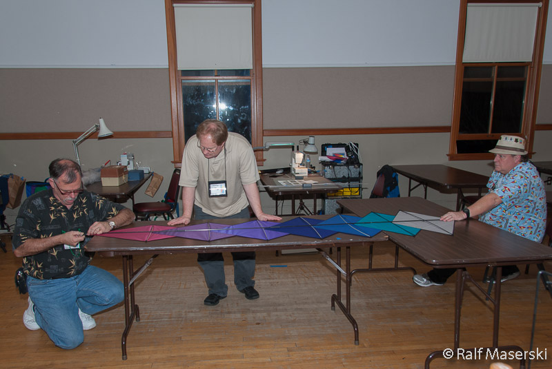 Rick Wright, Launny Herriges and Brian David working on the last kite.