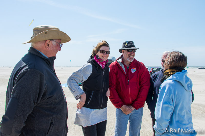 German-American kitefliers meeting on the beach